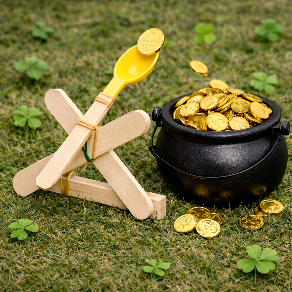 Learn how to make a catapult with popsicle sticks, and see if you can launch your gold coins into the lucky pot!