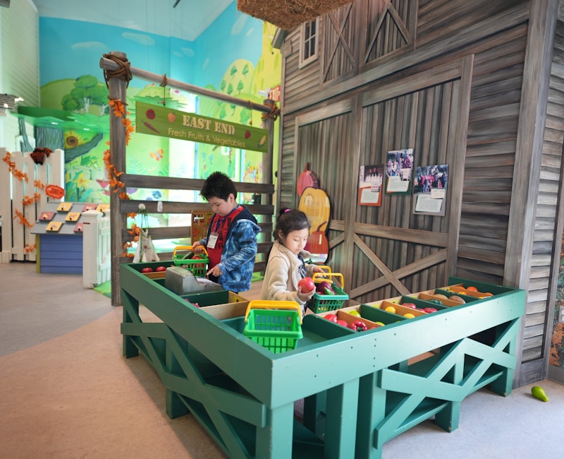 Echa un vistazo a lo que hay de temporada en el puesto de la granja de CMEE. Los niños pueden explorar los primeros conceptos matemáticos agrupando frutas y verduras, o haciendo el cambio de la caja registradora.